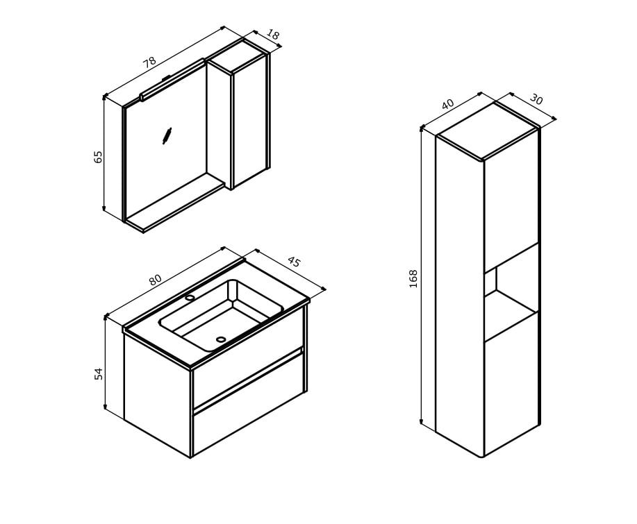 Orka Düden 80 Banyo Dolabı ( Çekmeceli ) + Boy Dolabı 40 Odeon Beyaz Meşe ( Boy Dolabı Dahildir )