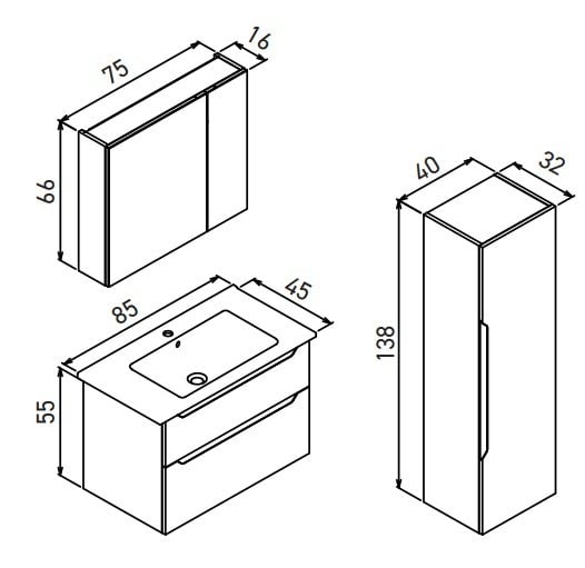 Orka Messina 85 Banyo Dolabı (Dolaplı Aynalı) Meşe ( Boy Dolabı Hariçtir )