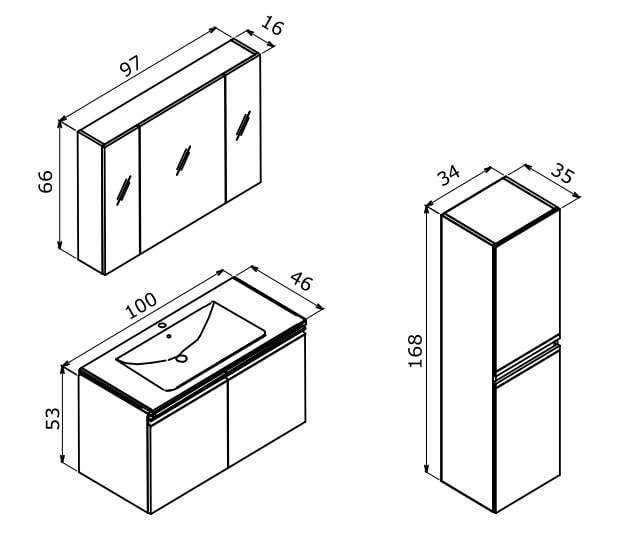 Orka Terme 100 Banyo Dolabı + Boy Dolabı 35 Siyah (Boy Dolabı Dahildir)