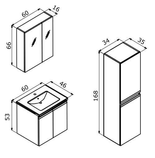 Orka Terme 60 Banyo Dolabı + Boy Dolabı 35 Beyaz (Boy Dolabı Dahildir)