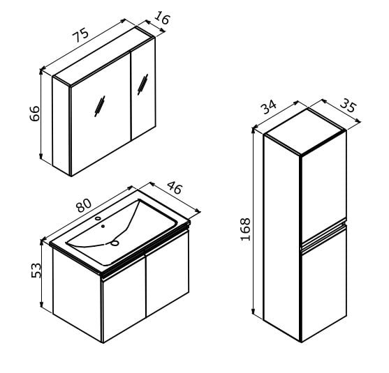 Orka Terme 80 Banyo Dolabı Kaşmir (Boy Dolabı Hariçtir)
